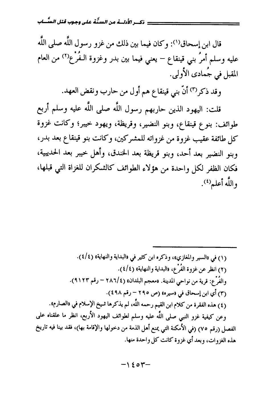 قُلْتُ: الْيَهُودُ الَّذِينَ حَارَبَهُمْ رَسُولُ اللَّهِ صَلَّى اللَّهُ عَلَيْهِ وَسَلَّمَ أَرْبَعُ طَوَائِفَ: بَنُو قَيْنُقَاعَ، وَبَنُو النَّضِيرِ، وَقُرَيْظَةُ، وَيَهُودُ خَيْبَرَ. وَكَانَتْ غَزْوَةُ كُلِّ طَائِفَةٍ عَقِيبَ غَزْوَةٍ مِنْ غَزَوَاتِهِ لِلْمُشْرِكِينَ، وَكَانَتْ بَنُو قَيْنُقَاعَ بَعْدَ بَدْرٍ، وَبَنُو النَّضِيرِ بَعْدَ أُحُدٍ، وَبَنُو قُرَيْظَةَ بَعْدَ الْخَنْدَقِ، وَأَهْلُ خَيْبَرَ بَعْدَ الْحُدَيْبِيَةِ، فَكَانَ الظَّفَرُ لِكُلِّ وَاحِدَةٍ مِنْ هَؤُلَاءِ الطَّوَائِفِ كَالشُّكْرَانِ لِلْغَزَاةِ الَّتِي قَبْلَهَا، وَاللَّهُ أَعْلَمُ.