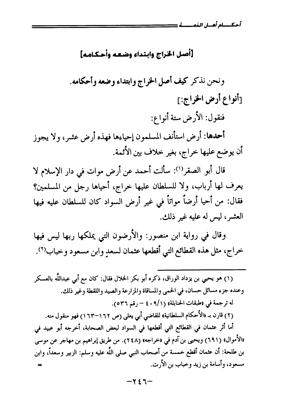 [أَنْوَاعُ أَرْضِ الْخَرَاجِ:]