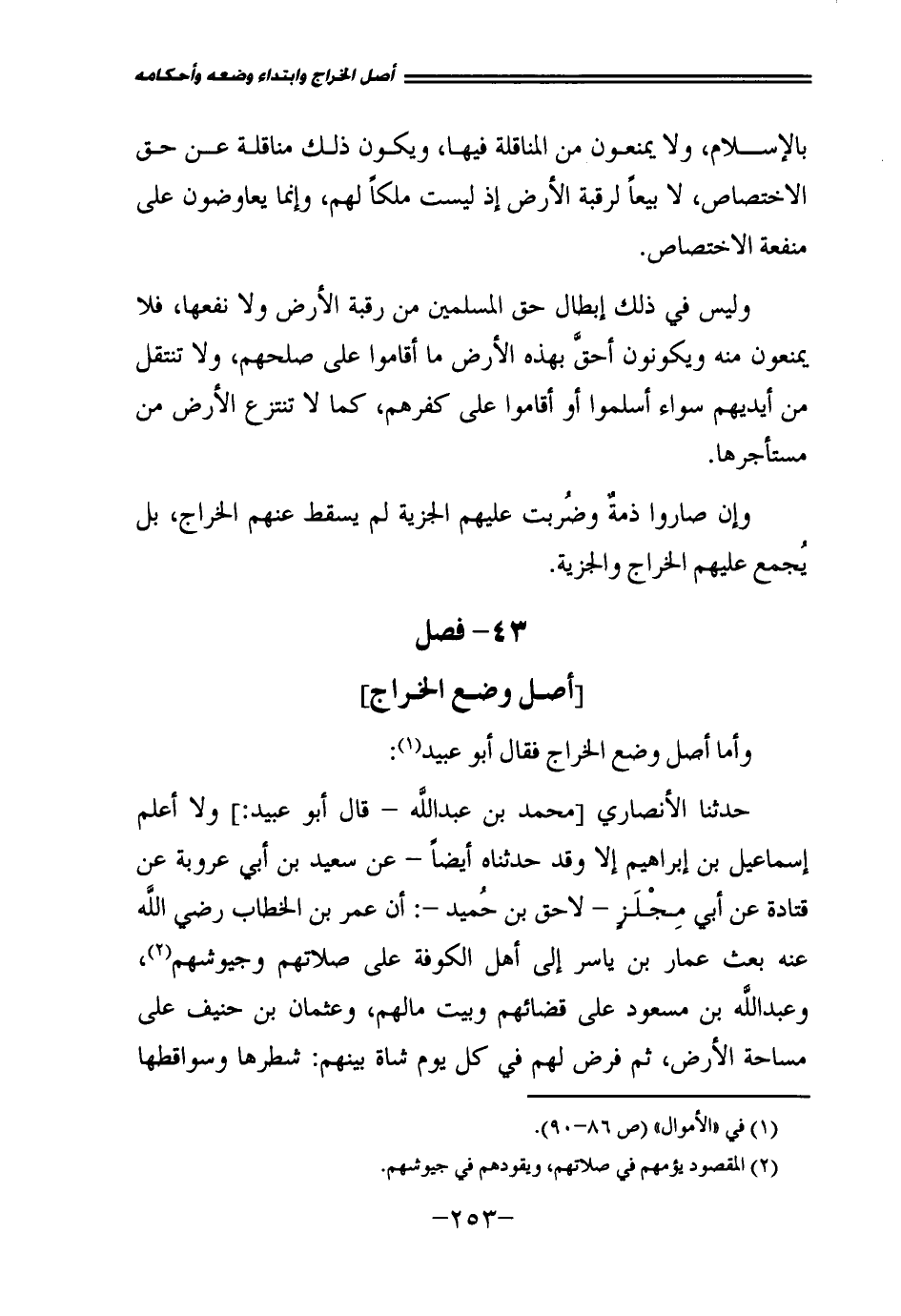 وَأَمَّا أَصْلُ وَضْعِ الْخَرَاجِ فَقَالَ أَبُو عُبَيْدٍ: