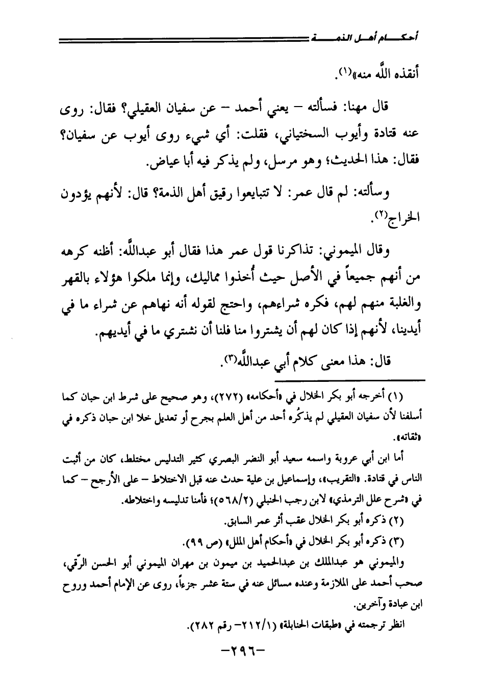 وَسَأَلْتُهُ: لِمَ قَالَ عُمَرُ: لَا تَتَبَايَعُوا رَقِيقَ أَهْلِ الذِّمَّةِ، قَالَ: لِأَنَّهُمْ يُؤَدُّونَ الْخَرَاجَ.