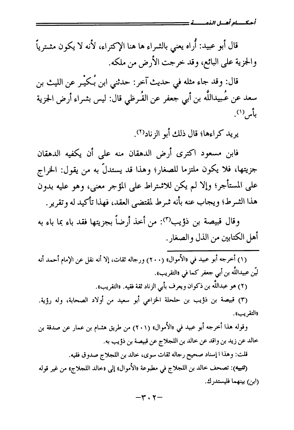 قَالَ أَبُو عُبَيْدٍ: أَرَاهُ يَعْنِي بِالشِّرَاءِ هَاهُنَا الِاكْتِرَاءَ، لِأَنَّهُ لَا يَكُونُ مُشْتَرِيًا وَالْجِزْيَةُ عَلَى الْبَائِعِ وَقَدْ خَرَجَتِ الْأَرْضُ مِنْ مِلْكِهِ.