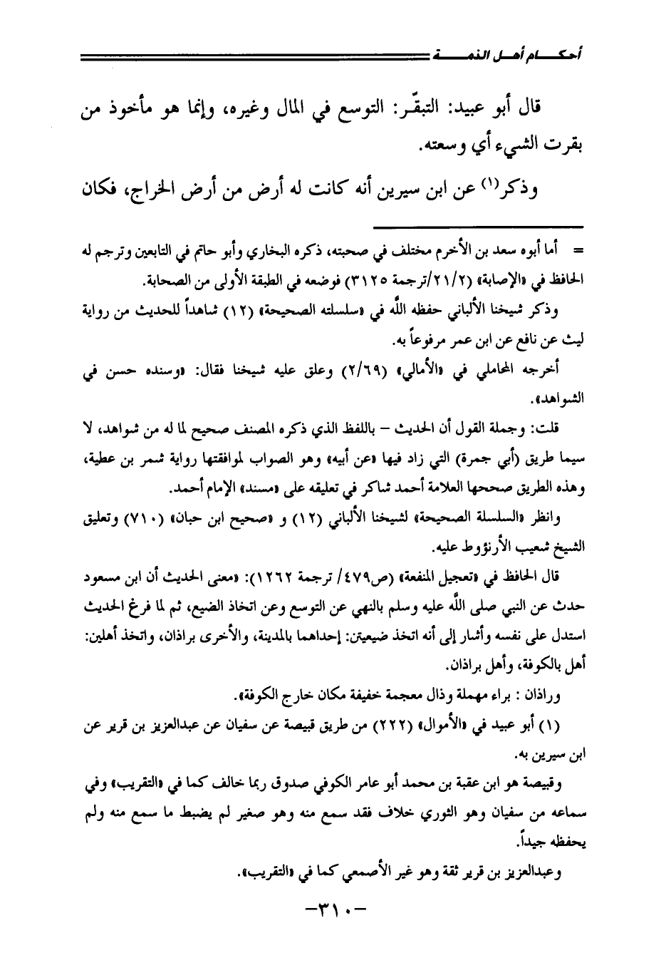 وَذُكِرَ عَنِ ابْنِ سِيرِينَ أَنَّهُ كَانَتْ لَهُ أَرْضٌ مِنْ أَرْضِ الْخَرَاجِ، فَكَانَ