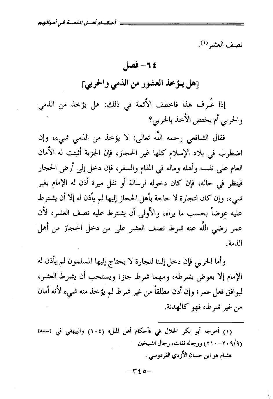 [هَلْ يُؤْخَذُ الْعُشُورُ مِنَ الذِّمِّيِّ وَالْحَرْبِيِّ]