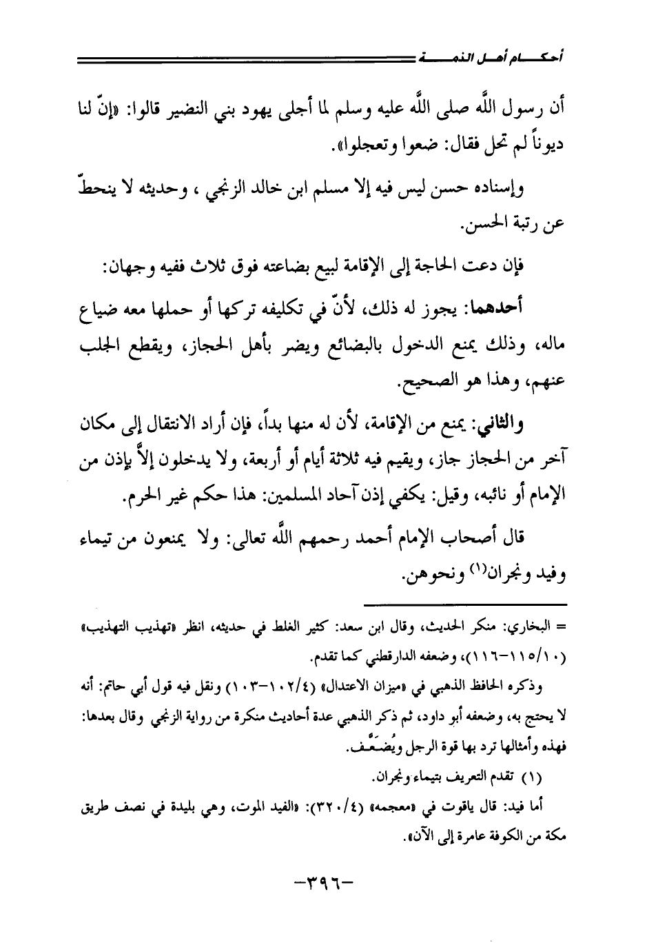 قَالَ أَصْحَابُ الْإِمَامِ أَحْمَدَ رَحِمَهُمُ اللَّهُ تَعَالَى: وَلَا يُمْنَعُونَ مِنْ تَيْمَاءَ وَفَيْدَ وَنَجْرَانَ وَنَحْوِهِنَّ.