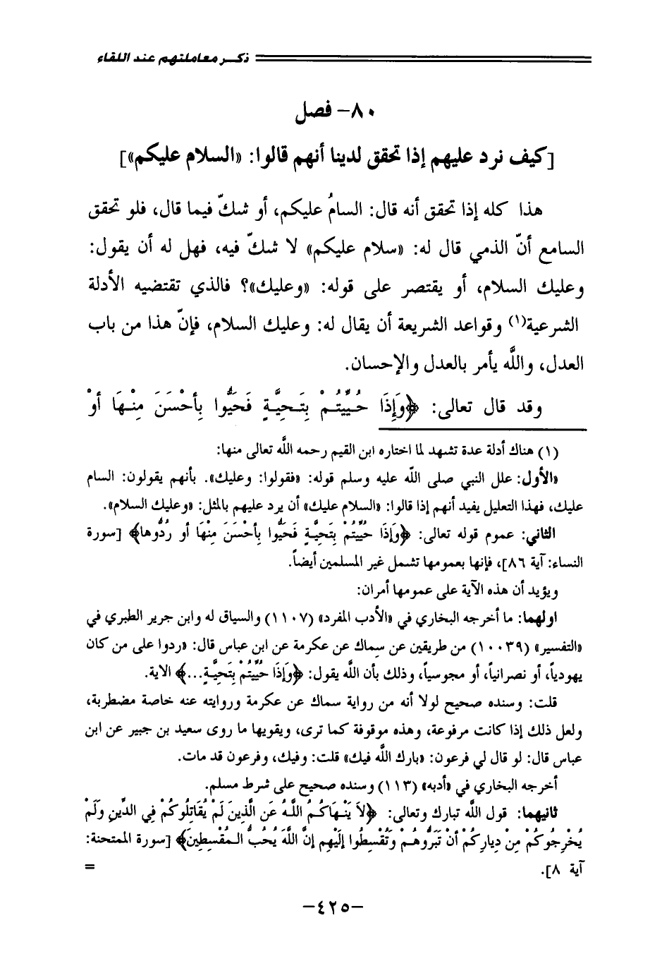 [كَيْفَ نَرُدُّ عَلَيْهِمْ إِذَا تَحَقَّقَ لَدَيْنَا أَنَّهُمْ قَالُوا: " السَّلَامُ عَلَيْكُمْ "] .