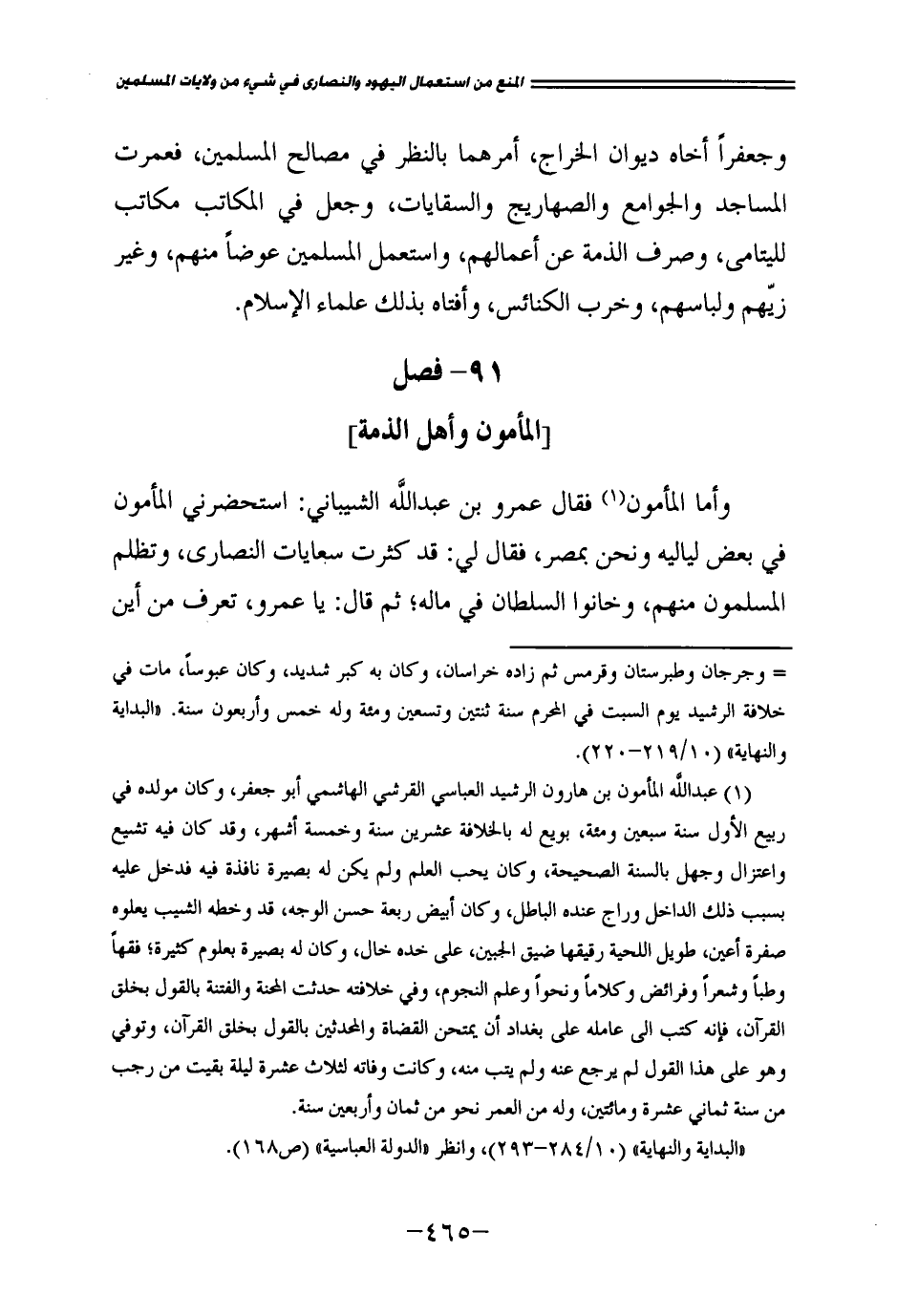 [فَصْلٌ الْمَأْمُونُ وَأَهْلُ الذِّمَّةِ]