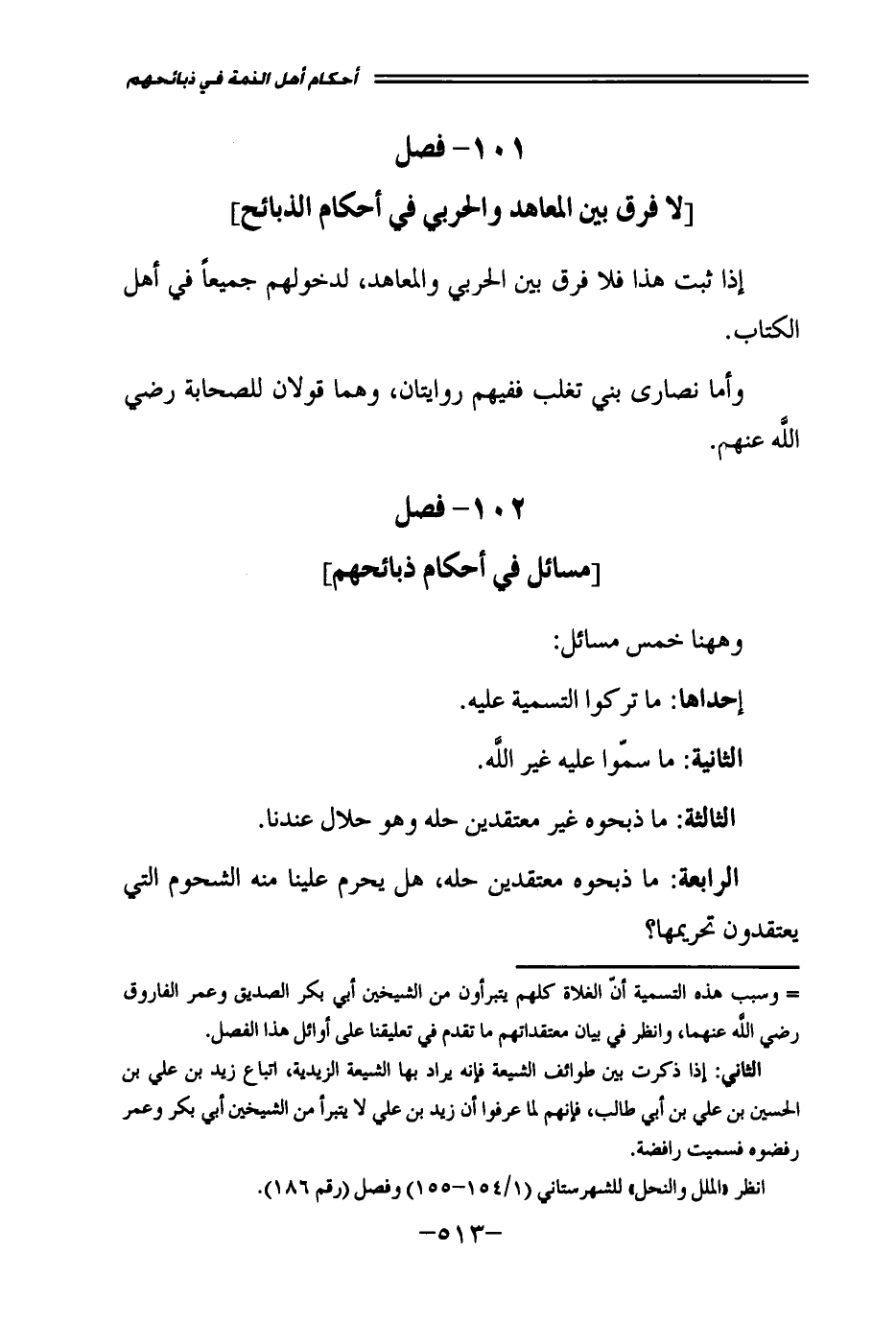 [فَصْلٌ مَسَائِلُ فِي أَحْكَامِ ذَبَائِحِهِمْ]