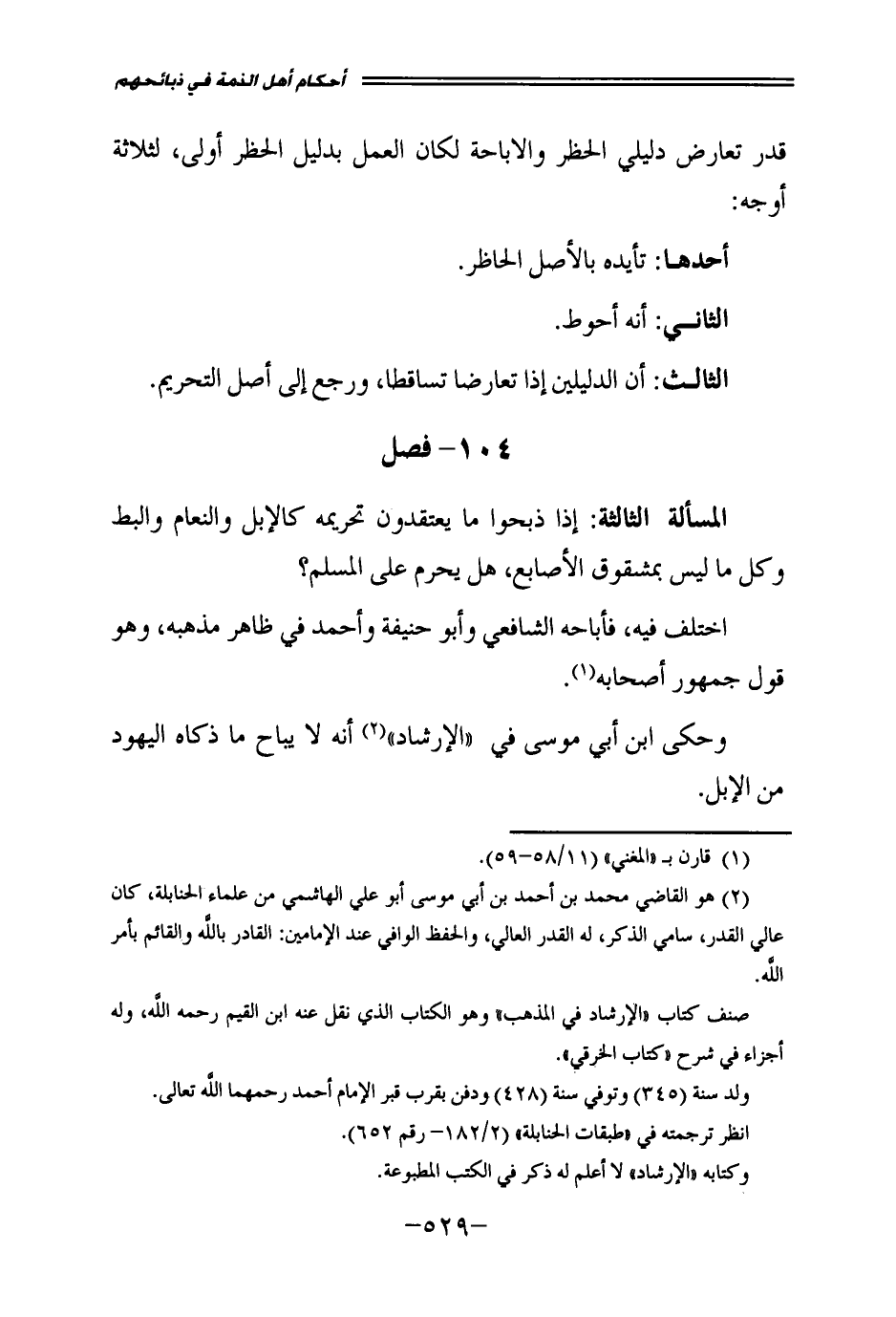 وَحَكَى ابْنُ أَبِي مُوسَى فِي " الْإِرْشَادِ " أَنَّهُ لَا يُبَاحُ مَا ذَكَّاهُ الْيَهُودُ مِنَ الْإِبِلِ.
