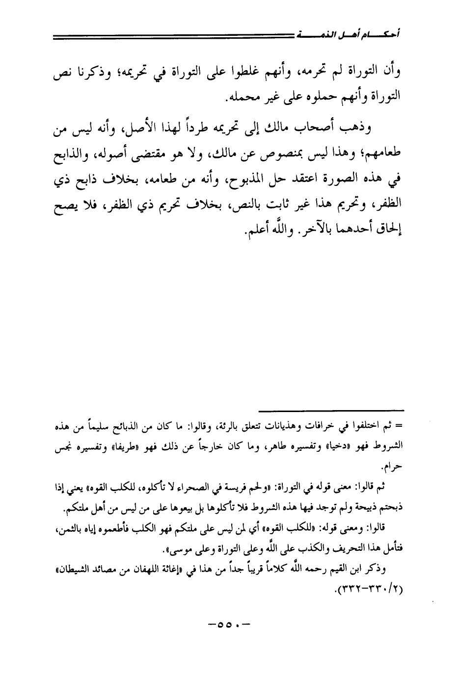 وَأَنَّ التَّوْرَاةَ لَمْ تُحَرِّمْهُ، وَأَنَّهُمْ غَلِطُوا عَلَى التَّوْرَاةِ فِي تَحْرِيمِهِ، وَذَكَرْنَا نَصَّ التَّوْرَاةِ وَأَنَّهُمْ حَمَلُوهُ عَلَى غَيْرِ مَحْمَلِهِ.