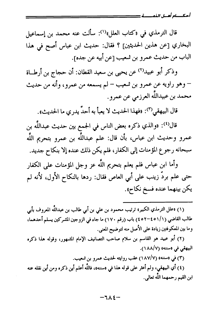 [عَنْ هَذَيْنِ الْحَدِيثَيْنِ] ؟ فَقَالَ: حَدِيثُ ابْنِ عَبَّاسٍ أَصَحُّ فِي هَذَا الْبَابِ مِنْ حَدِيثِ عَمْرِو بْنِ شُعَيْبٍ