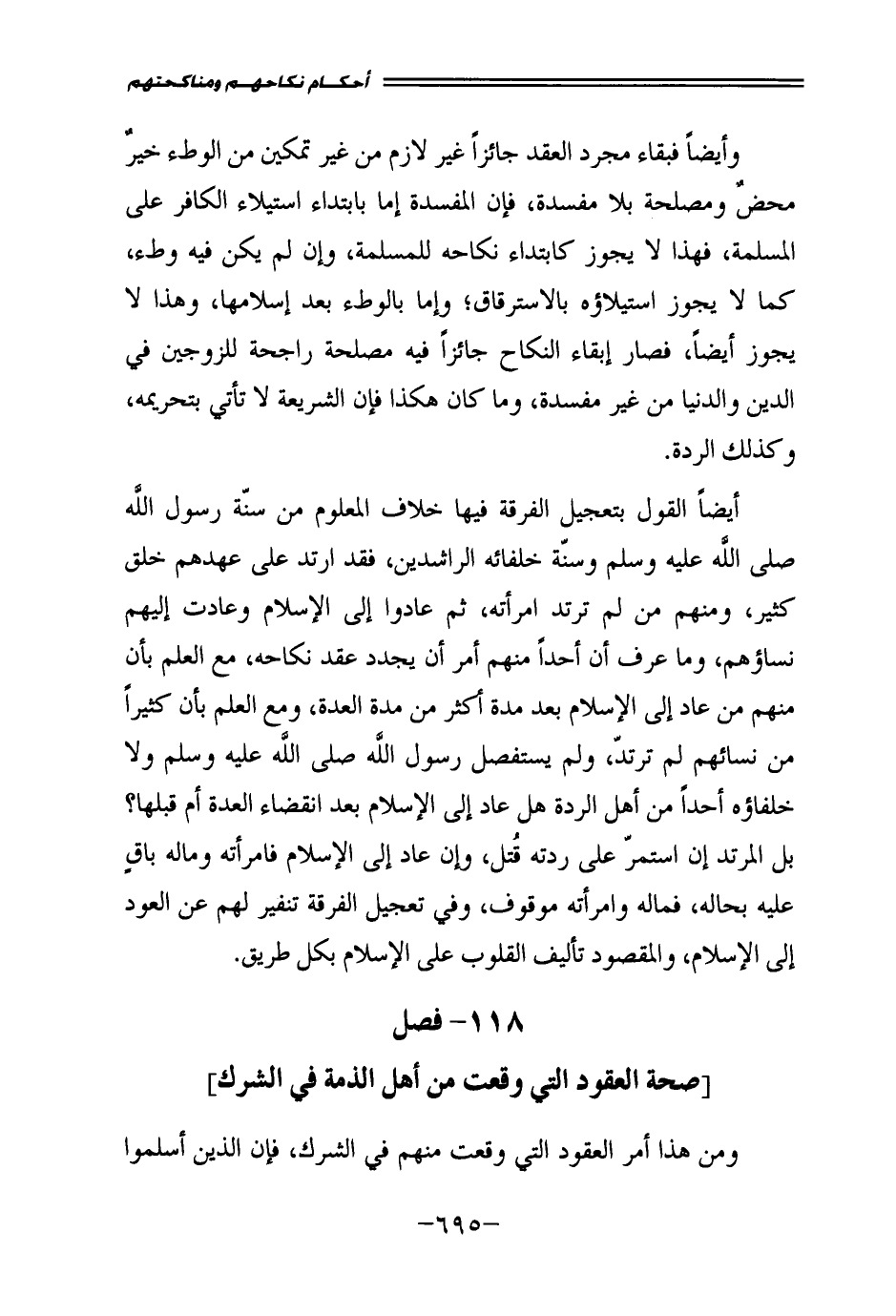 وَمِنْ هَذَا أَمْرُ الْعُقُودِ الَّتِي وَقَعَتْ مِنْهُمْ فِي الشِّرْكِ فَإِنَّ الَّذِينَ أَسْلَمُوا