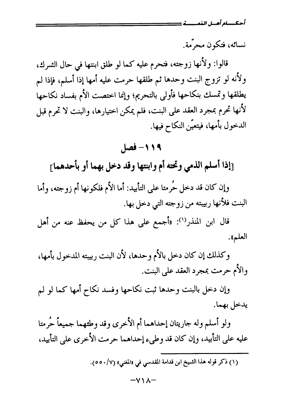 [إِذَا أَسْلَمَ الذِّمِّيُّ وَتَحْتَهُ أُمٌّ وَابْنَتُهَا وَقَدْ دَخَلَ بِهِمَا أَوْ بِإِحْدَاهُمَا] .