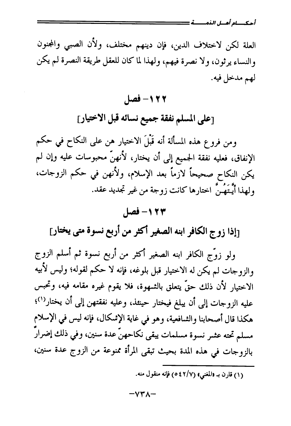 وَمِنْ فُرُوعِ هَذِهِ الْمَسْأَلَةِ أَنَّهُ قَبْلَ الِاخْتِيَارِ هُنَّ عَلَى النِّكَاحِ فِي حُكْمِ الْإِنْفَاقِ، فَعَلَيْهِ نَفَقَةُ الْجَمِيعِ إِلَى أَنْ يَخْتَارَ، لِأَنَّهُنَّ مَحْبُوسَاتٌ عَلَيْهِ، وَإِنْ لَمْ يَكُنِ النِّكَاحُ صَحِيحًا لَازِمًا بَعْدَ الْإِسْلَامِ، وَلِأَنَّهُنَّ فِي حُكْمِ الزَّوْجَاتِ، وَلِهَذَا أَيَّتُهُنَّ اخْتَارَهَا كَانَتْ زَوْجَةً مِنْ غَيْرِ تَجْدِيدِ عَقْدٍ.