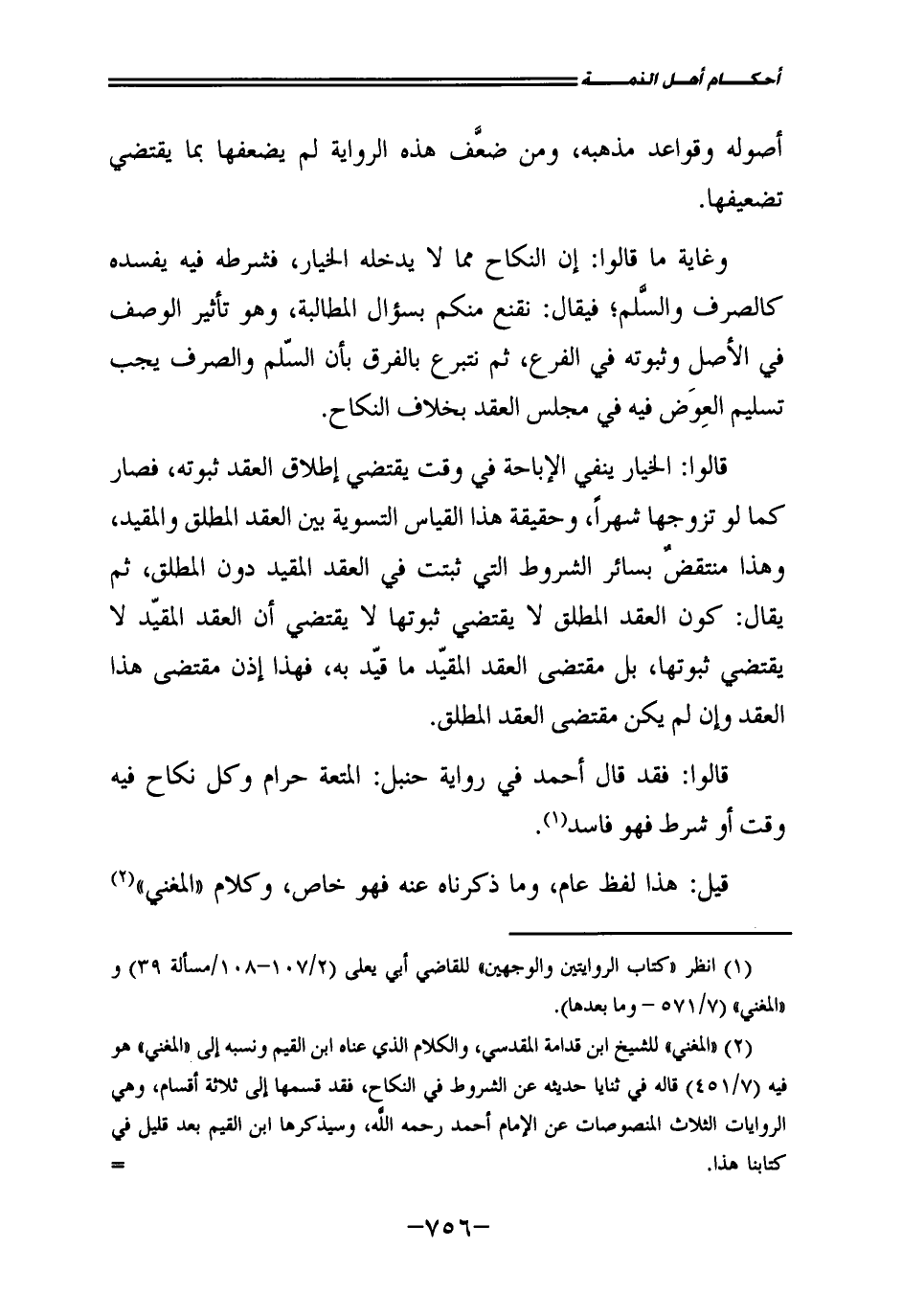 قَالُوا: فَقَدْ قَالَ أَحْمَدُ فِي رِوَايَةِ حَنْبَلٍ: الْمُتْعَةُ حَرَامٌ وَكُلُّ نِكَاحٍ فِيهِ وَقْتٌ أَوْ شَرْطٌ فَهُوَ فَاسِدٌ.