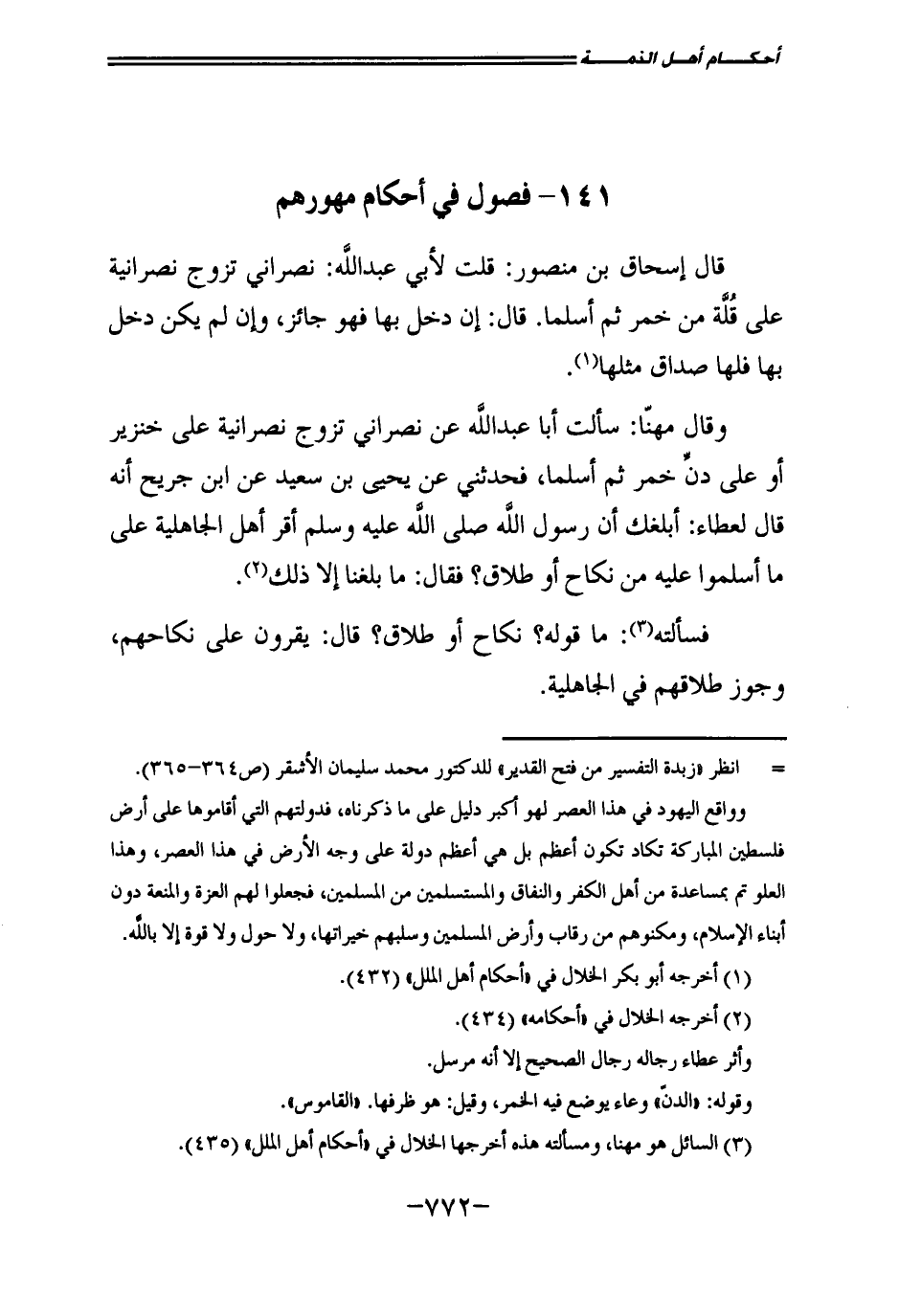 141 - فُصُولٌ فِي أَحْكَامِ مُهُورِهِمْ.
