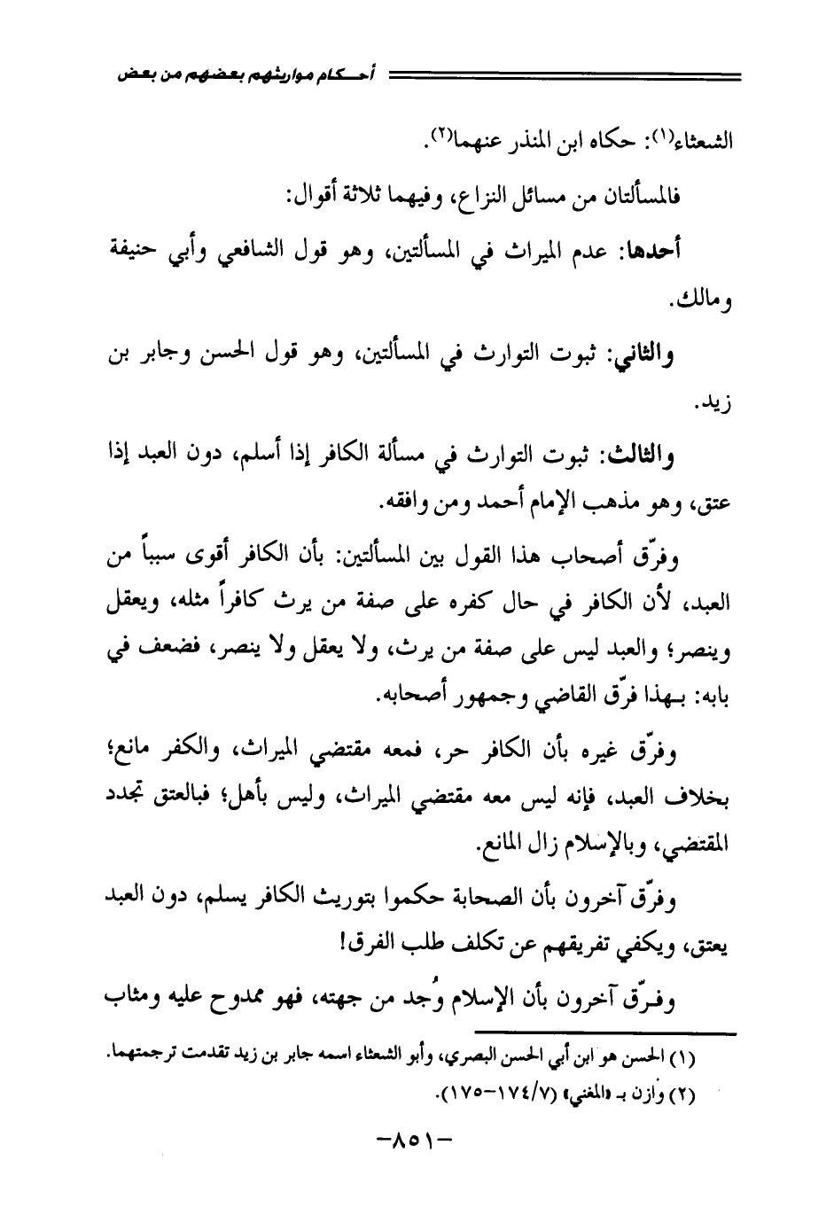 فَالْمَسْأَلَتَانِ مِنْ مَسَائِلِ النِّزَاعِ، وَفِيهِمَا ثَلَاثَةُ أَقْوَالٍ: