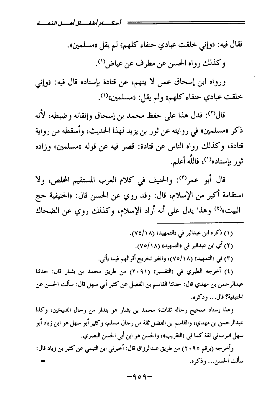 فَقَالَ فِيهِ: " «وَإِنِّي خَلَقْتُ عِبَادِي حُنَفَاءَ كُلَّهُمْ» " لَمْ يَقُلْ " مُسْلِمِينَ ".