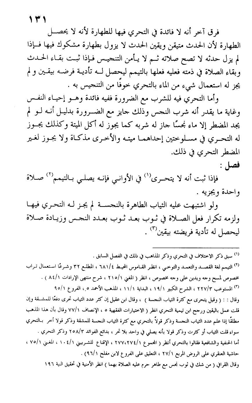 (١) سبق ذكر الاختلاف في التحري وذكر المذاهب في ذلك في الفصل السابق.