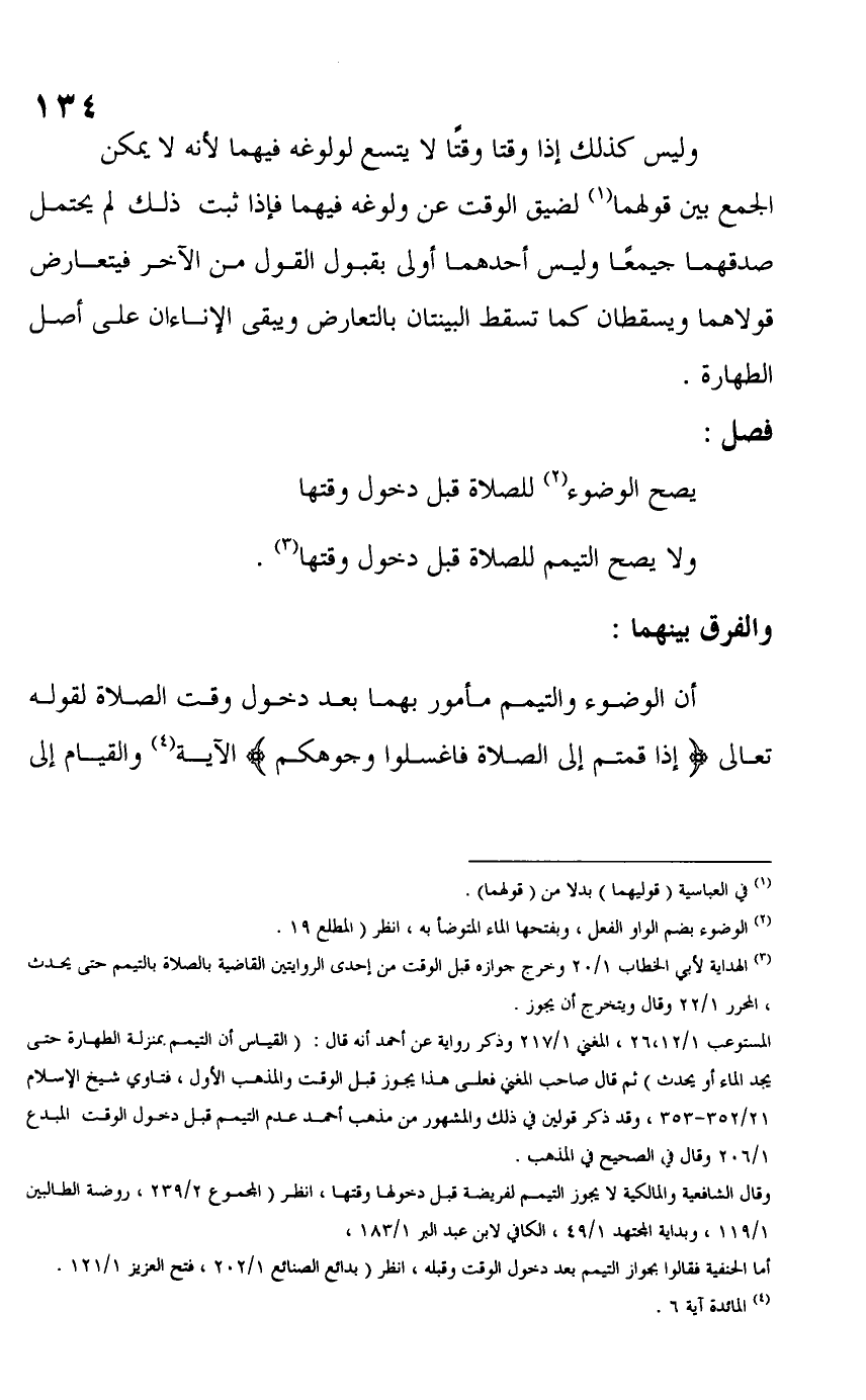 أن الوضوء والتيمم مأمور بهما بعد دخول وقت الصلاة لقوله تعالى {إِذَا قُمْتُمْ إِلَى الصَّلَاةِ فَاغْسِلُوا وُجُوهَكُمْ} الآية (٤) والقيام إلى