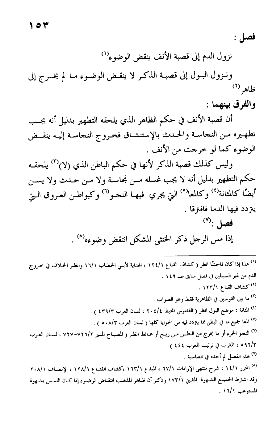 (١) هذا إذا كان فاحشًا انظر (كشاف القناع ١/ ١٢٤، الهداية لأبي الخطاب ١/ ١٦ وانظر الخلاف في خروج الدم من غير السبيلين في فصل سابق صـ ١٤٩.