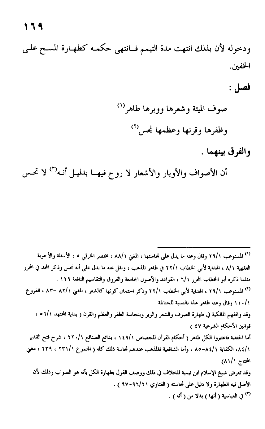 (٢) المستوعب ١/ ٢٩، الهداية لأبي الخطاب ١/ ٢٢ وذكر احتمال كونها كالشعر، المغني ١/ ٨٢ - ٨٣، الفروع ١/ ١١٠ وقال وعنه طاهر هذا بالنسبة للحنابلة.