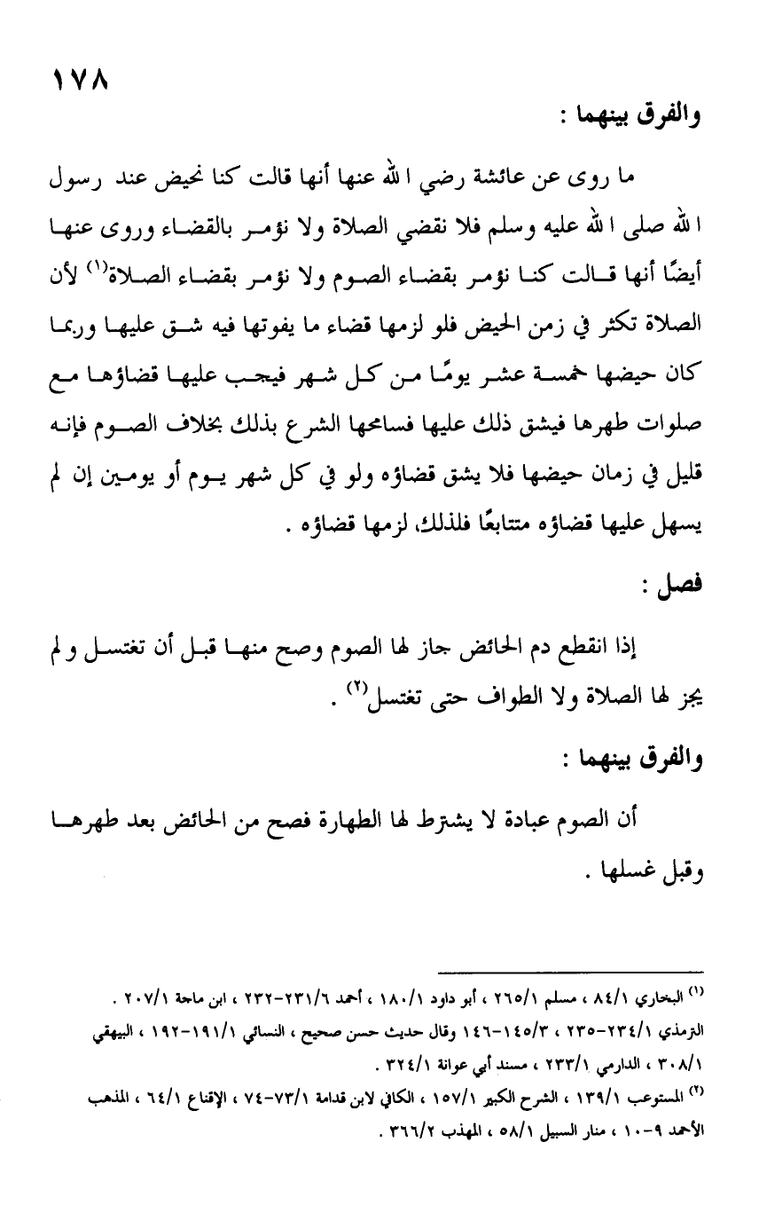 (١) البخاري ١/ ٨٤، مسلم ١/ ٢٦٥، أبو داود ١/ ١٨٠، أحمد ٦/ ٢٣١ - ٢٣٢، ابن ماجة ١/ ٢٠٧. الترمذي ١/ ٢٣٤ - ٢٣٥، ٣/ ١٤٥ - ١٤٦ وقال حديث حسن صحيح، النسائي ١/ ١٩١ - ١٩٢، البيهقي ١/ ٣٠٨، الدارمي ١/ ٢٣٣، مسند أبي عوانة ١/ ٣٢٤.