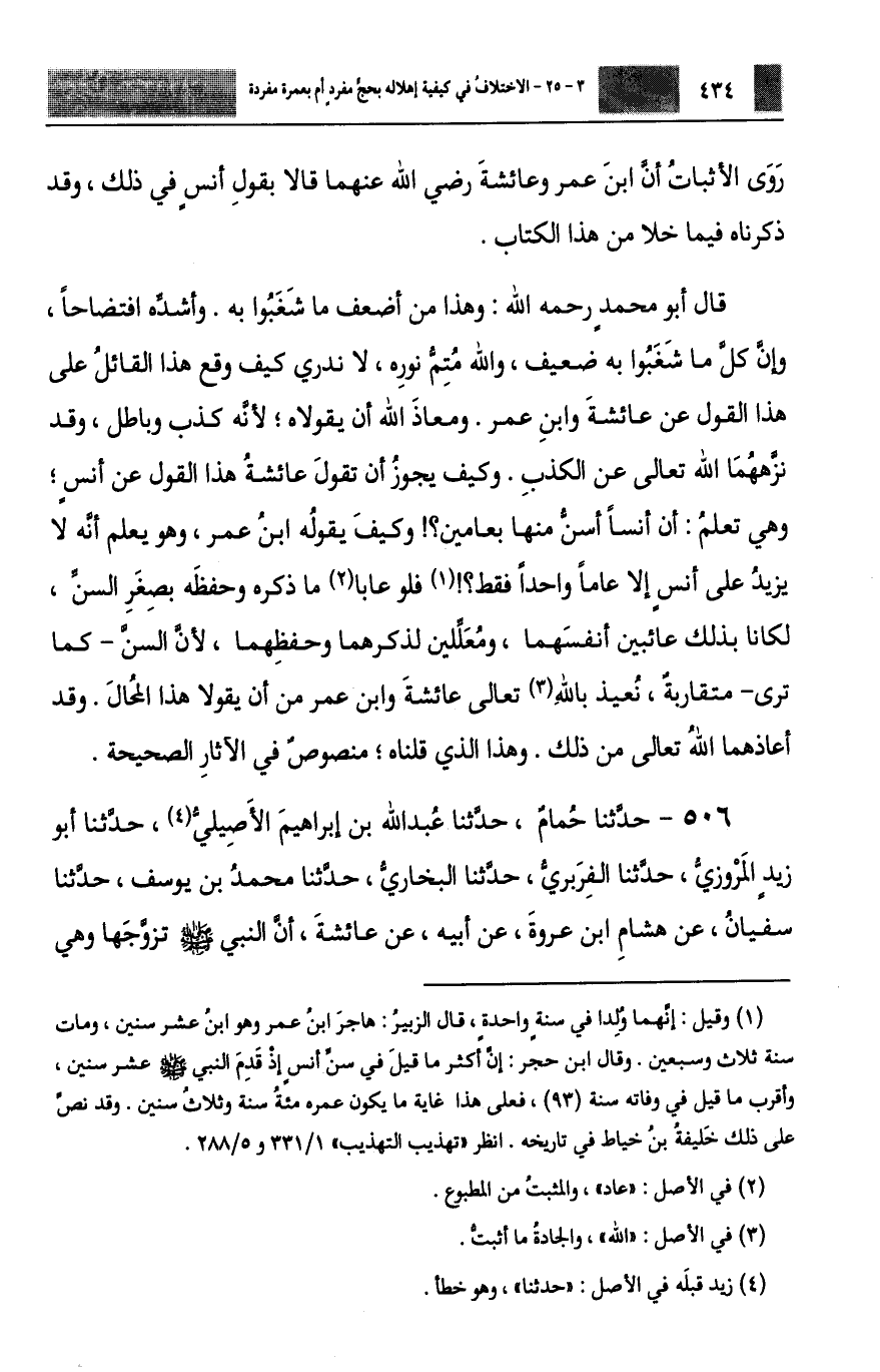 506 - حَدَّثَنَا حُمَامٌ، حَدَّثَنَا عَبْدُ اللَّهِ بْنُ إِبْرَاهِيمَ الْأَصِيلِيُّ، حَدَّثَنَا أَبُو زَيْدٍ الْمَرْوَزِيُّ، حَدَّثَنَا الْفَرَبْرِيُّ، حَدَّثَنَا الْبُخَارِيُّ، حَدَّثَنَا مُحَمَّدُ بْنُ يُوسُفَ، حَدَّثَنَا سُفْيَانُ، عَنْ هِشَامِ بْنِ عُرْوَةَ، عَنْ أَبِيهِ، عَنْ عَائِشَةَ، «أَنَّ النَّبِيَّ صَلَّى اللهُ عَلَيْهِ وَسَلَّمَ §تَزَوَّجَهَا وَهِيَ -[435]- بِنْتُ سِتِّ سِنِينَ، وَأُدْخِلَتْ عَلَيْهِ وَهِيَ ابْنَةُ تِسْعٍ، وَمَكَثَتْ عِنْدَهُ تِسْعًا»