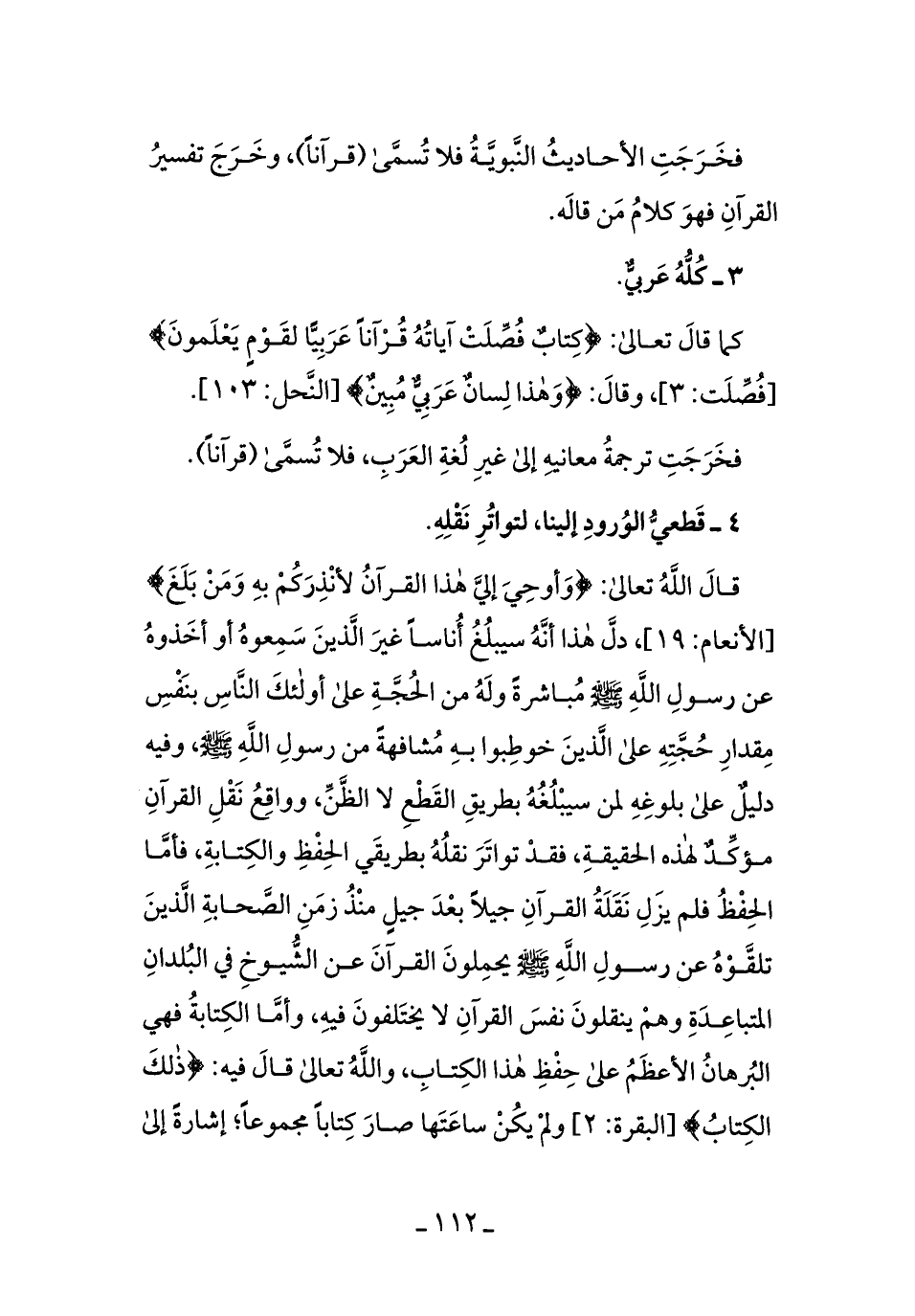 فخرجت ترجمةُ معانيهِ إلى غيرِ لُغةِ العربِ، فلا تُسمَّى (قُرآنًا) .