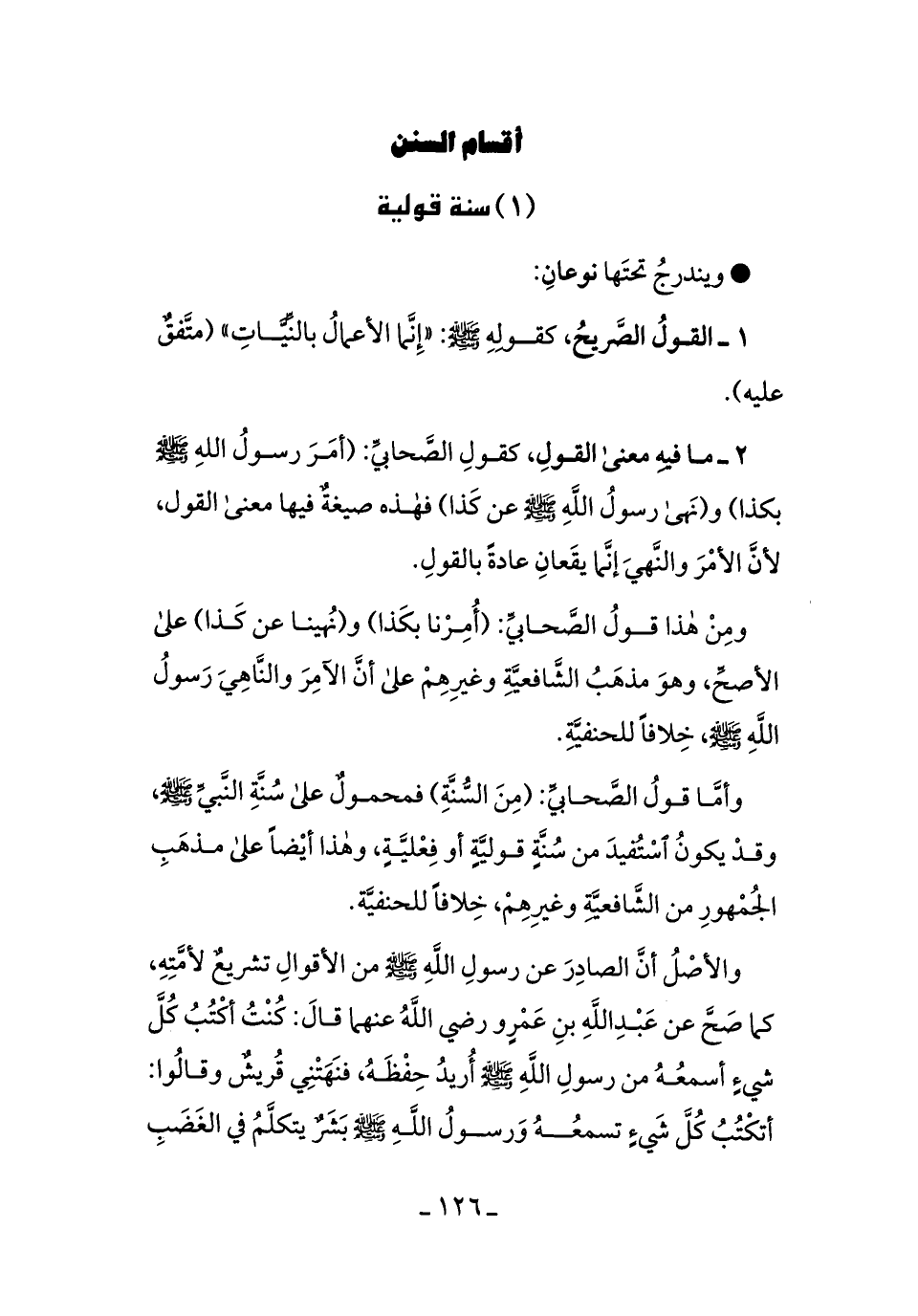 1ـ القولُ الصَّريحُ، كقوله - صلى الله عليه وسلم -: ((إنَّما الأعمالُ بالنِّيَّاتِ)) [متَّفقٌ عليه] .