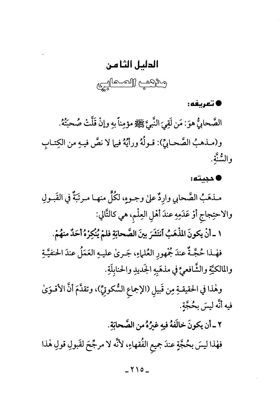 و (مذهبُ الصَّحابيِّ) قولهُ ورأيُهُ فيما لا نصَّ فيه من الكتابِ والسُّنَّةِ.
