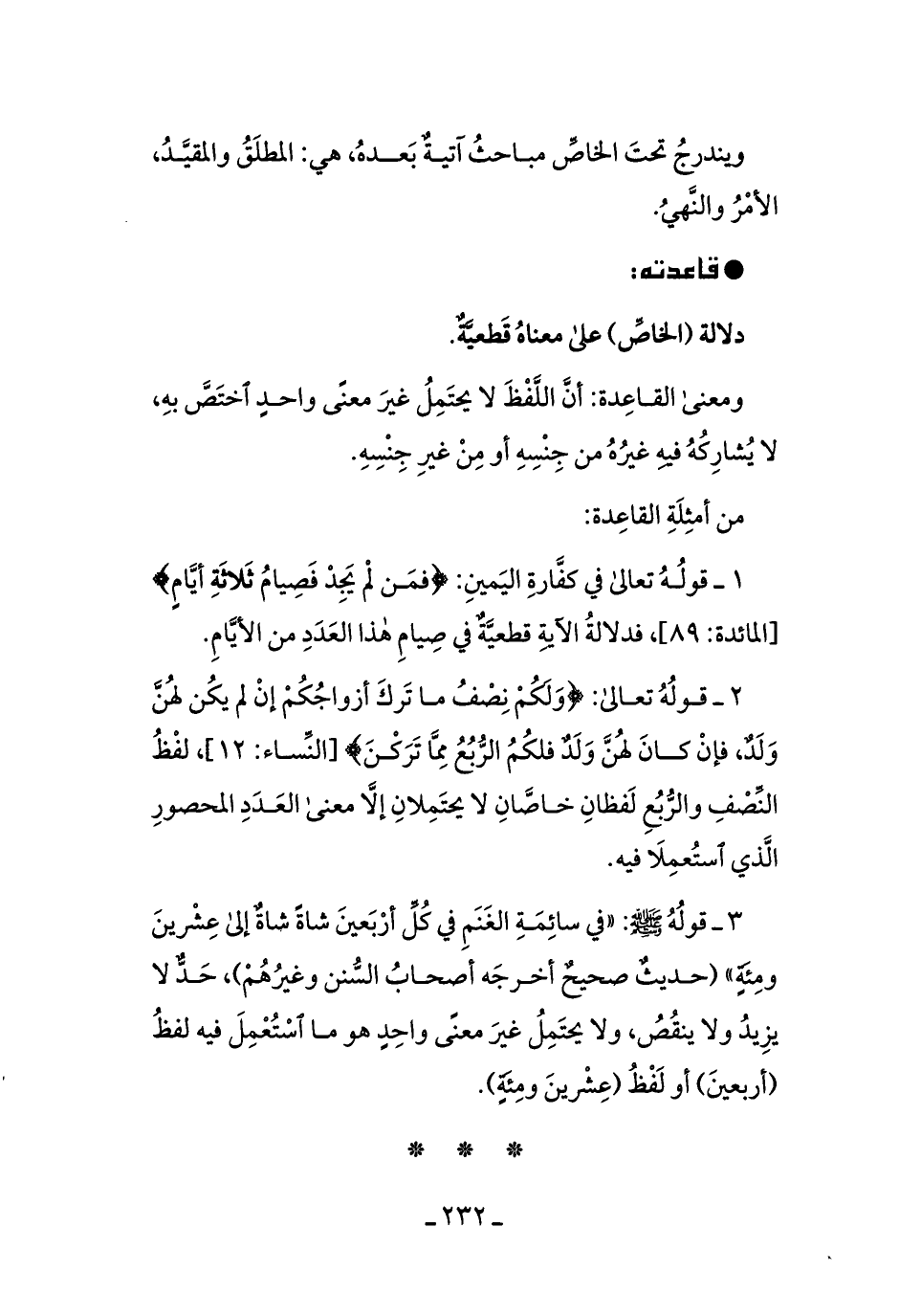 ويندرجُ تحتَ الخاصِّ مباحثُ آتيَةٌ بعدَهُ، هيَ: المُطلقُ والمقيَّدُ، الأمرُ والنَّهيُ.