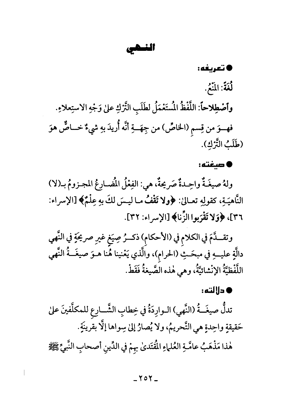 وتقدَّم في الكلام في (الأحكامِ) ذكرُ صِيغٍ غير صريحةٍ في النَّهي دالَّةٍ عليه في مبحثِ (الحرام) ، والَّذي يعنِينا هُنا صيغةُ النَّهي اللَّفظيَّةُ الإنشائيَّةُ، وهي هذه الصِّيغةُ فقطْ.