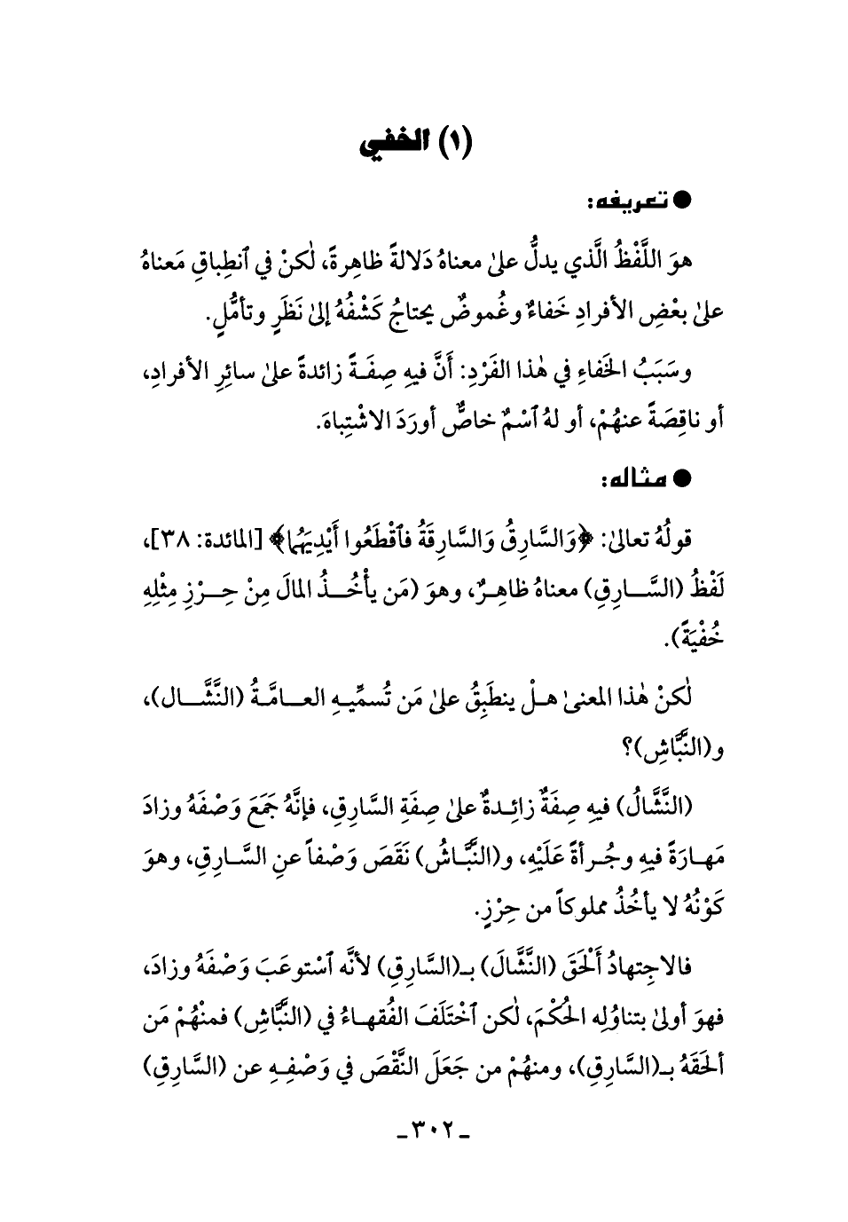 قوله تعالى: {وَالسَّارِقُ وَالسَّارِقَةُ فَاقْطَعُوا أَيْدِيَهُمَا} [المائدة: 38] ، لفظُ (السَّارقِ) معناهُ ظاهرٌ، وهو (منْ يأخُذُ المالِ من حِرزِ مثلِهِ خُفيةً) .