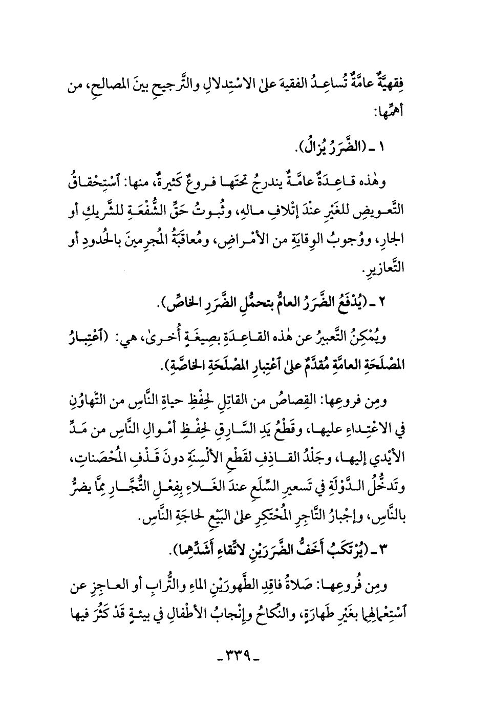 3ـ (يُرتكبُ أخفُّ الضَّررَينِ لاتِّقاءِ أشدِّهِمَا) .