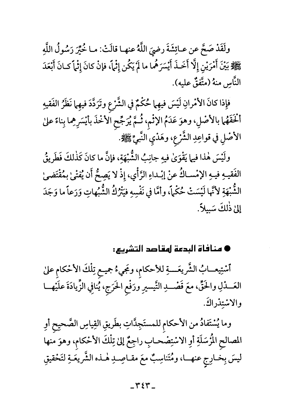 استيعابُ الشَّريعةِ للأحكامِ، ومجيءُ جميعِ تلكَ الأحكامِ على العدلِ والحقِّ، معَ قصدِ التَّيسيرِ ورفعِ الحرَجِ، يُنافي الزِّيادَةَ عليهَا والاستِدراكَ.