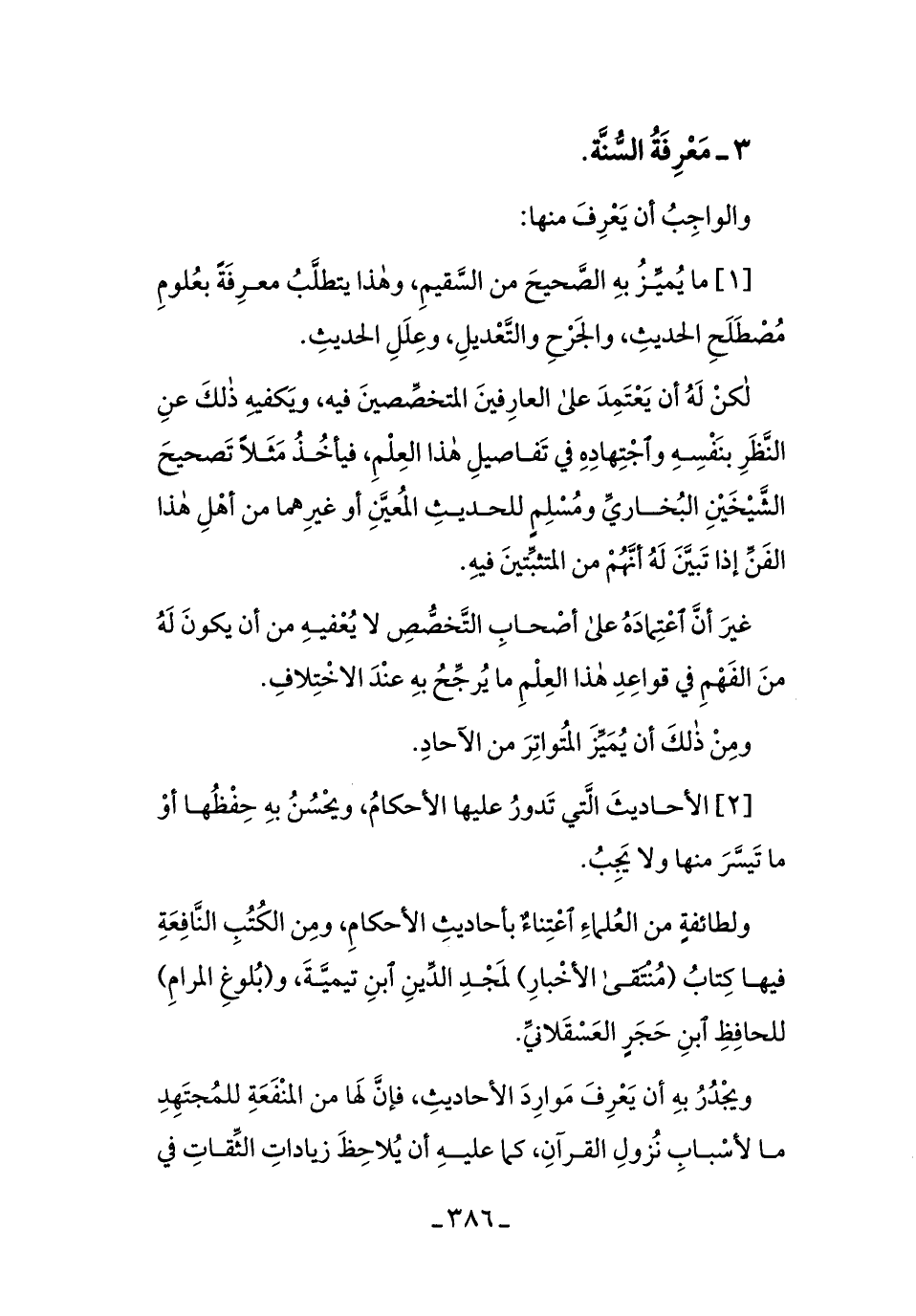 [2] الأحاديثَ الَّتي تدُورُ عليها الأحكامُ، ويحسُنُ بهِ حفظُهَا أو ما تيسَّرَ منها ولا يجبُ.