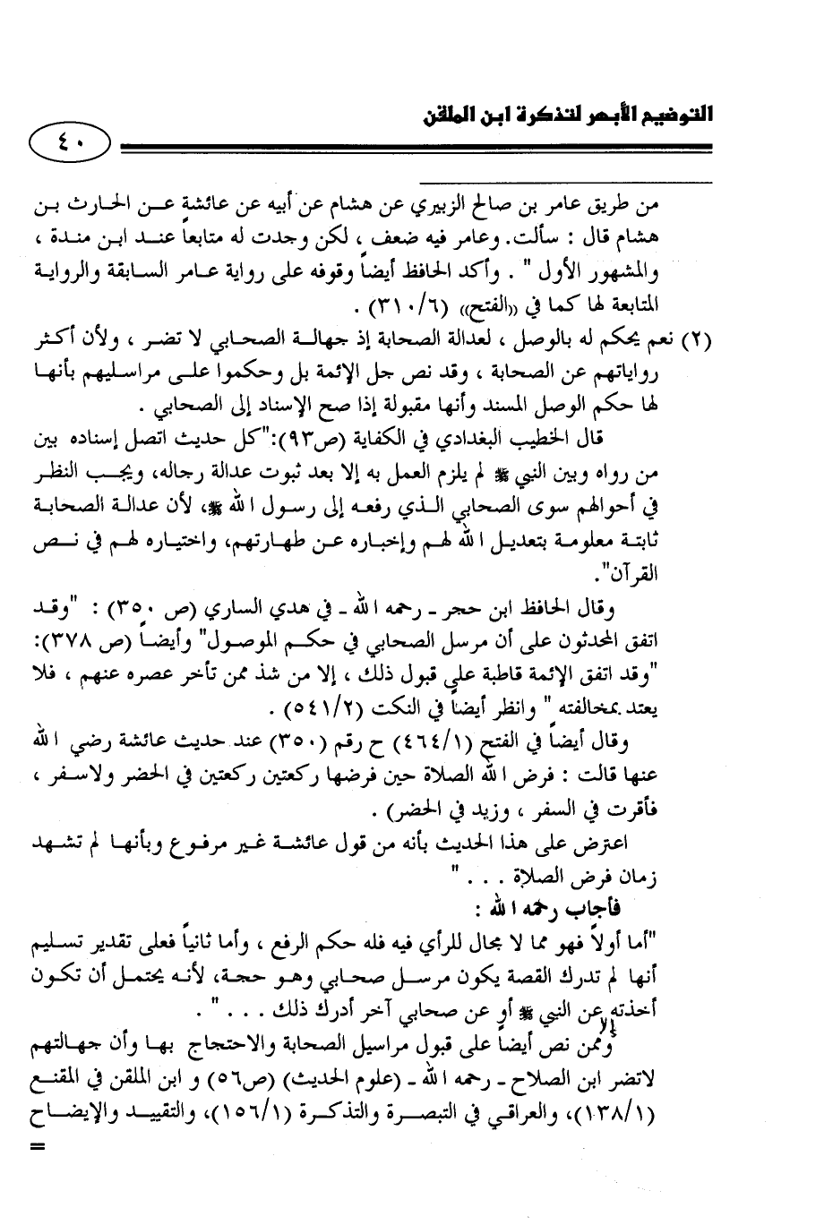 وممن نص أيضًا على قبول مراسيل الصحابة والاحتجاج بها وأن جهالتهم لا تضر ابن الصلاح -رحمه الله- "علوم الحديث" "ص56" وابن الملقن في المقنع "1/ 138"، والعراقي في التبصرة والتذكرة "1/ 156"، والتقييد والإيضاح =