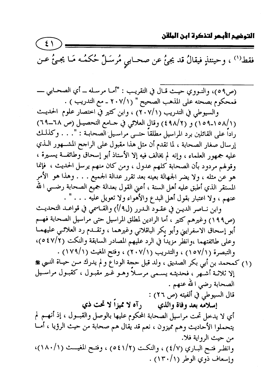 "ص59" والنووي حيث قال في التقريب: "أما مرسله -أي الصحابي- فمحكوم بصحته على المذهب الصحيح "1/ 207- مع التدريب".