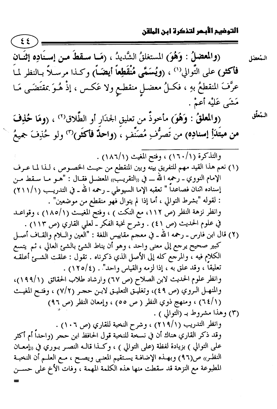 وانظر علوم الحديث لابن الصلاح "ص 67" وإرشاد طلاب الحقائق "1/ 199"، والمنهل الروي "ص 49"، وتعليق التعليق لابن حجر "2/ 7"، وفتح المغيث "1/ 64"، ومنهج ذوي النظر "ص 55"، وإمعان النظر "ص96".