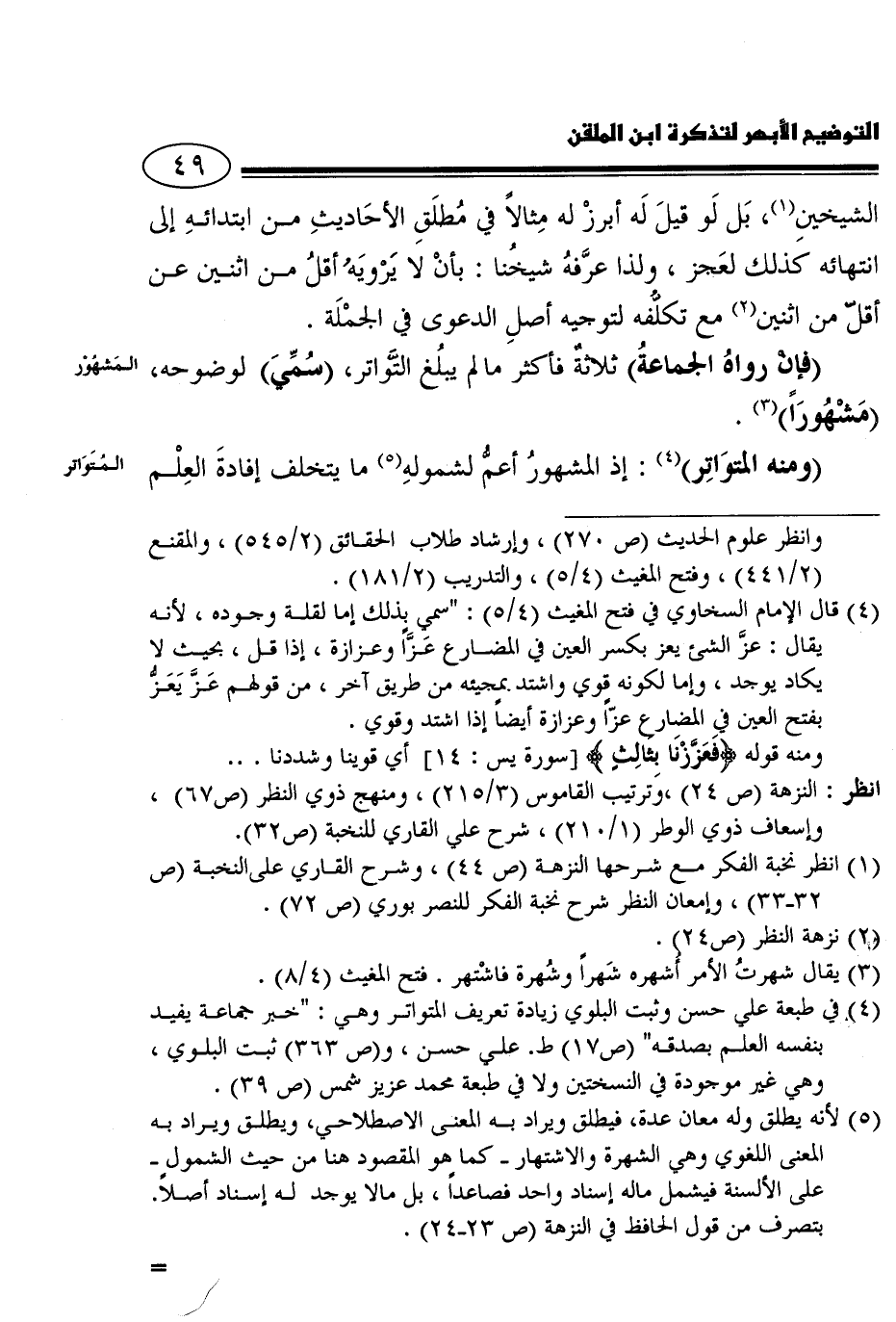 4 في طبعة علي حسن وثبت البلوي زيادة تعريف المتواتر وهي: "خبر جماعة يفيد بنفسه العلم بصدقه" "ص17" ط. علي حسن، "ص 363" ثبت البلوي، وهي غير موجودة في النسختين ولا في طبعة محمد عزيز شمس "ص 39".