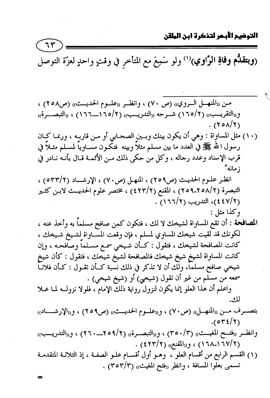 وانظر "فتح المغيث" "3/ 350"، و "التبصرة" "2/ 259- 260"، و "التدريب" "2/ 167 - 168"، و "المقنع" "2/ 423".