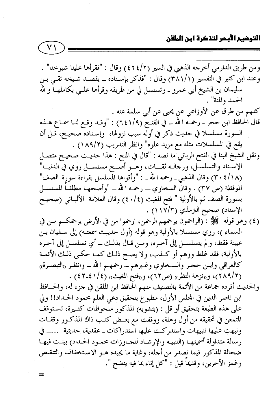 كتاب التوضيح الأبهر لتذكرة ابن الملقن في علم الأثر