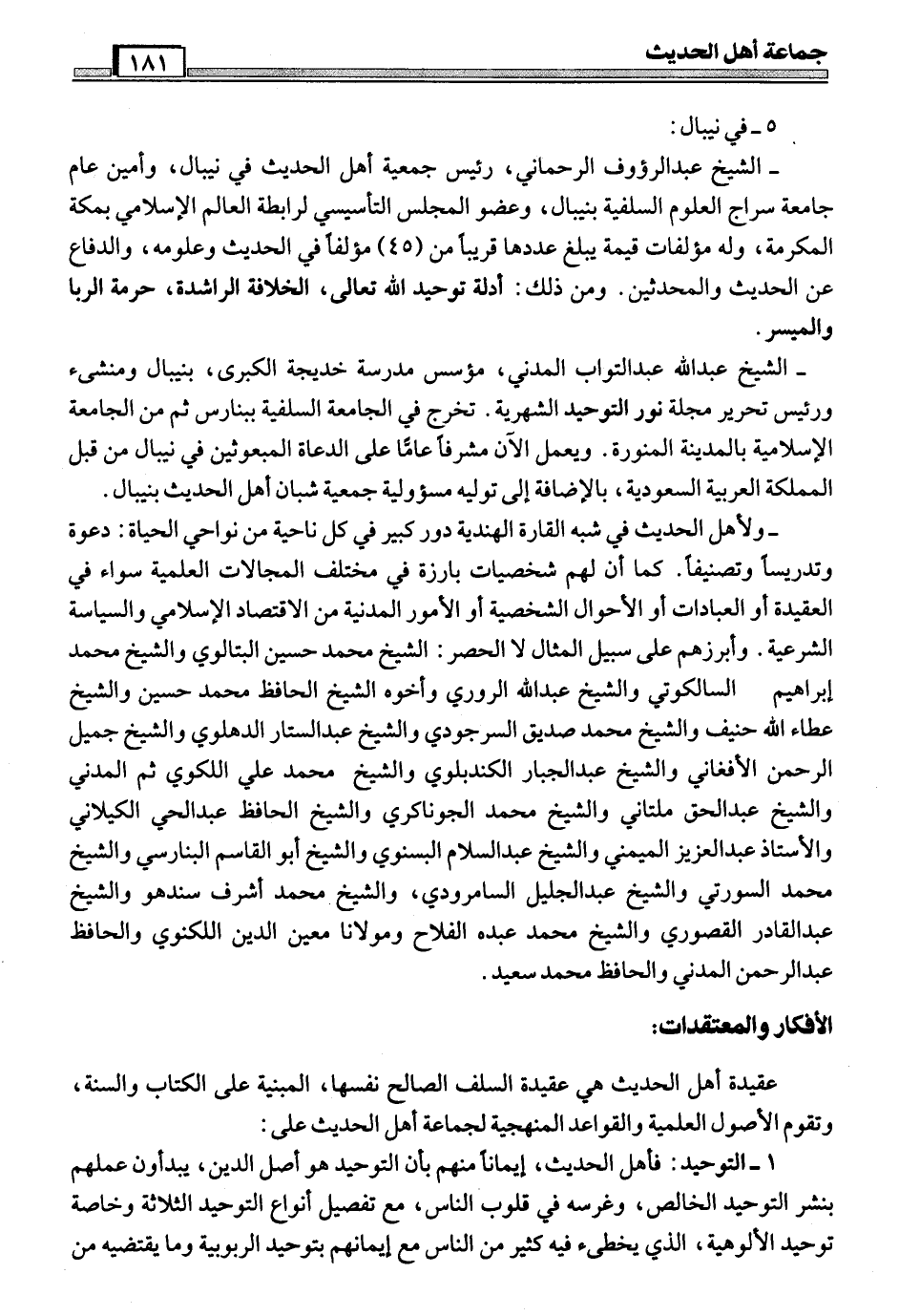 ـ جماعة أهل حديث كي تدريس خدمات، عابد حسن الرحماني، وعزيز الرحمن السلفي ط. الجامعة السلفية ببنارس 1400هـ.