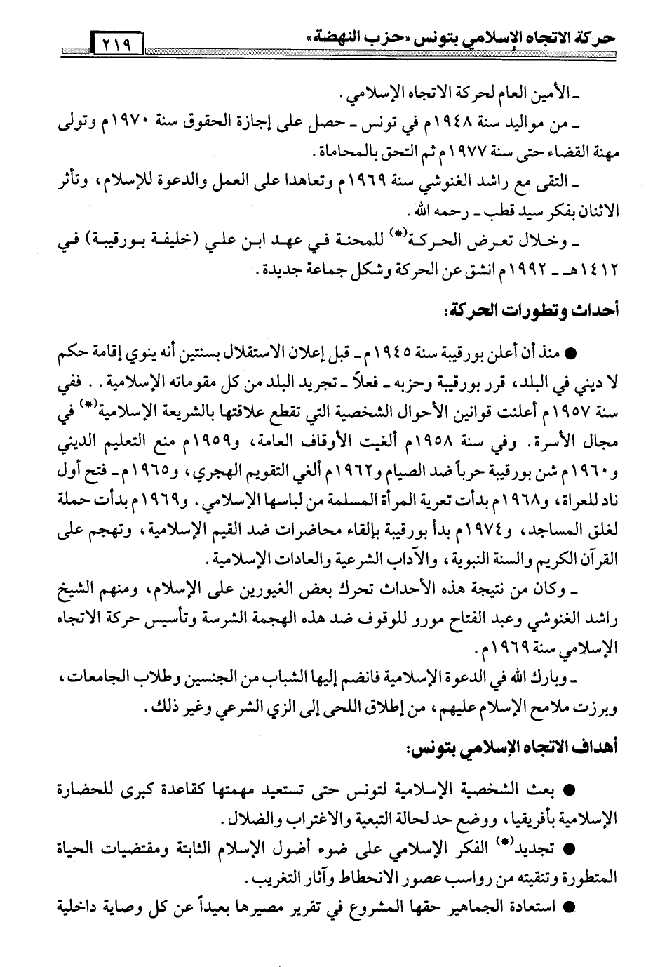 ـ معلومات عن حركة الاتجاه الإسلامي بتونس ـ (نشرة موسعة باللغة العربية عن الحركة) .