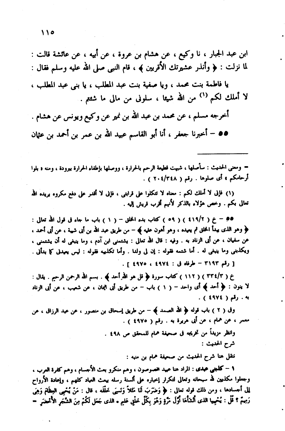 وفي "2" باب قوله: {اللَّهُ الصَّمَدُ} - من طريق إسحاق بن منصور، عن عبد الرزاق، عن معمر، عن همام، عن أبي هريرة به. رقم "4975".
