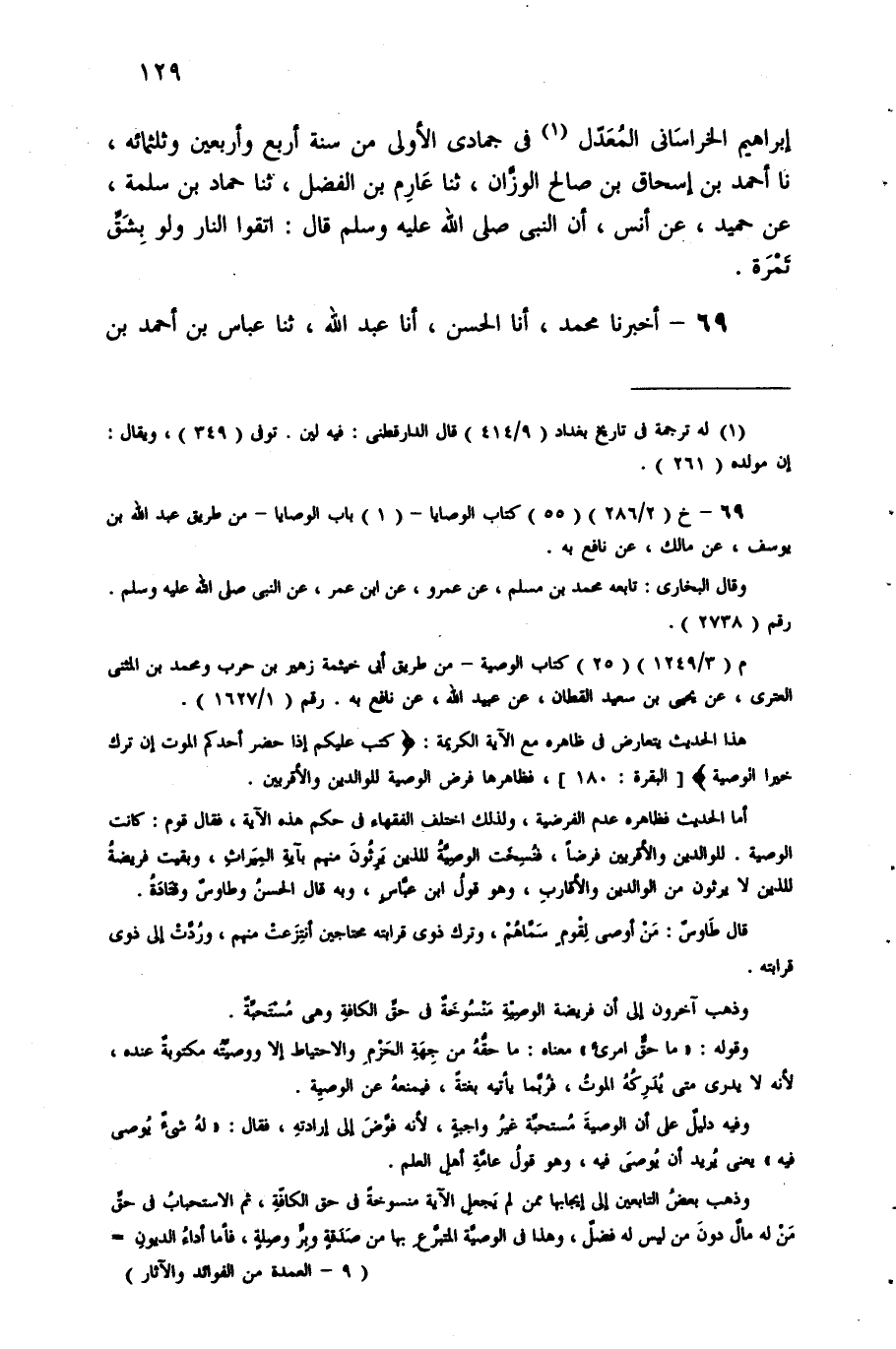 [69] خ "2/ 286" "55" كتاب الوصايا - "1" باب الوصايا - من طريق عبد الله بن يوسف، عن مالك، عن نافع به.