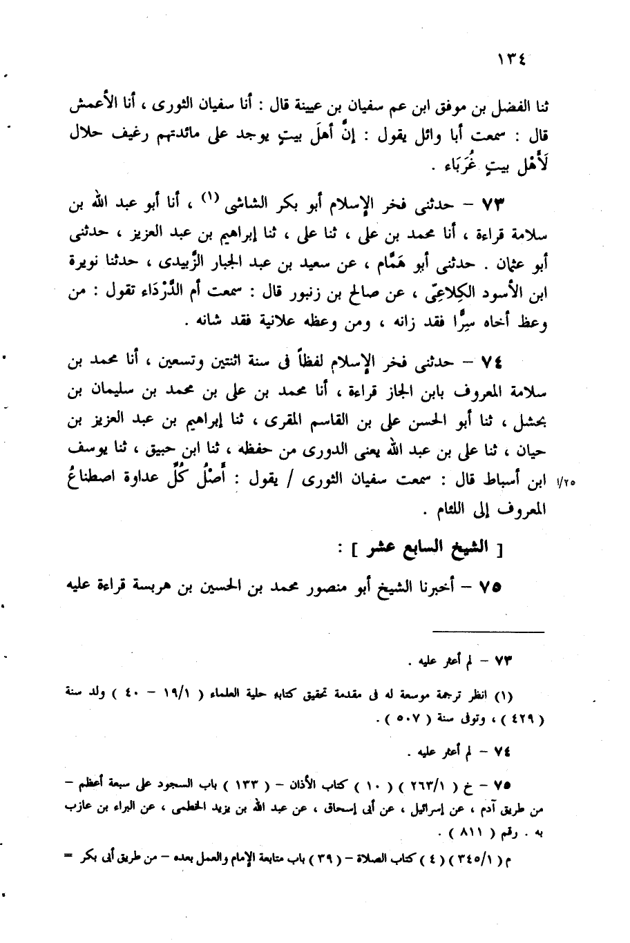 [74] حدثني فخر الإسلام لفظا في سنة اثنتين وتسعين، أنا مُحَمَّد بْن سلامة المعروف بابن الجار قراءة، أنا مُحَمَّد بن علي بن مُحَمَّد بن سُلَيْمَانَ بْنِ بَحْشَلٍ، ثنا أَبُو الْحَسَنِ عَلِيُّ بْنُ الْقَاسِمِ الْمُقْرِي، ثنا إِبْرَاهِيمُ بْنُ عَبْدِ الْعَزِيزِ بن حيان، ثنا علي بْن عبد اللَّه يعني الدوري من حفظه، ثنا ابن حبيق، ثنا يوسف بْن أسباط قَالَ: سمعت سُفْيَان الثوري يقول: أصل كل عداوة اصطناع المعروف إلى اللئام.