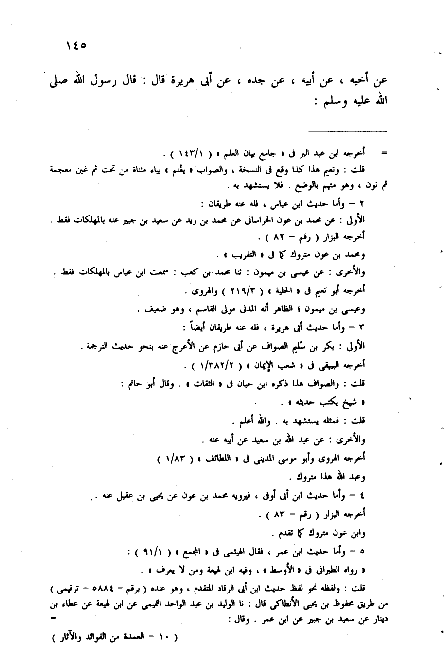 5- وأما حديث ابن عمر، فقال الهيثمي في "المجتمع" "1/ 91": "رواه الطبراني في "الأوسط"، وفيه ابن لهيعة ومن لا يعرف".