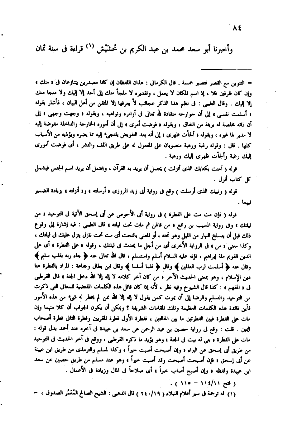 أخبرنا أَبُو سَعْدٍ مُحَمَّدُ بْنُ عَبْدِ الْكَرِيمِ بْنِ خُشَيش1 قِرَاءَةً فِي سنة ثمان