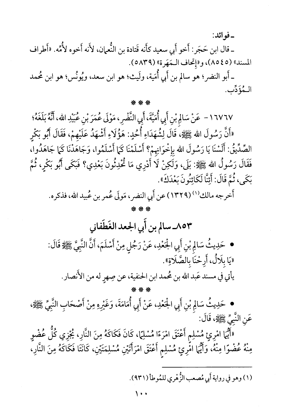 • حديث سالم بن أبي الجعد، عن أبي أمامة، وغيره من أصحاب النبي صَلى الله عَليه وسَلم عن النبي صَلى الله عَليه وسَلم قال:
